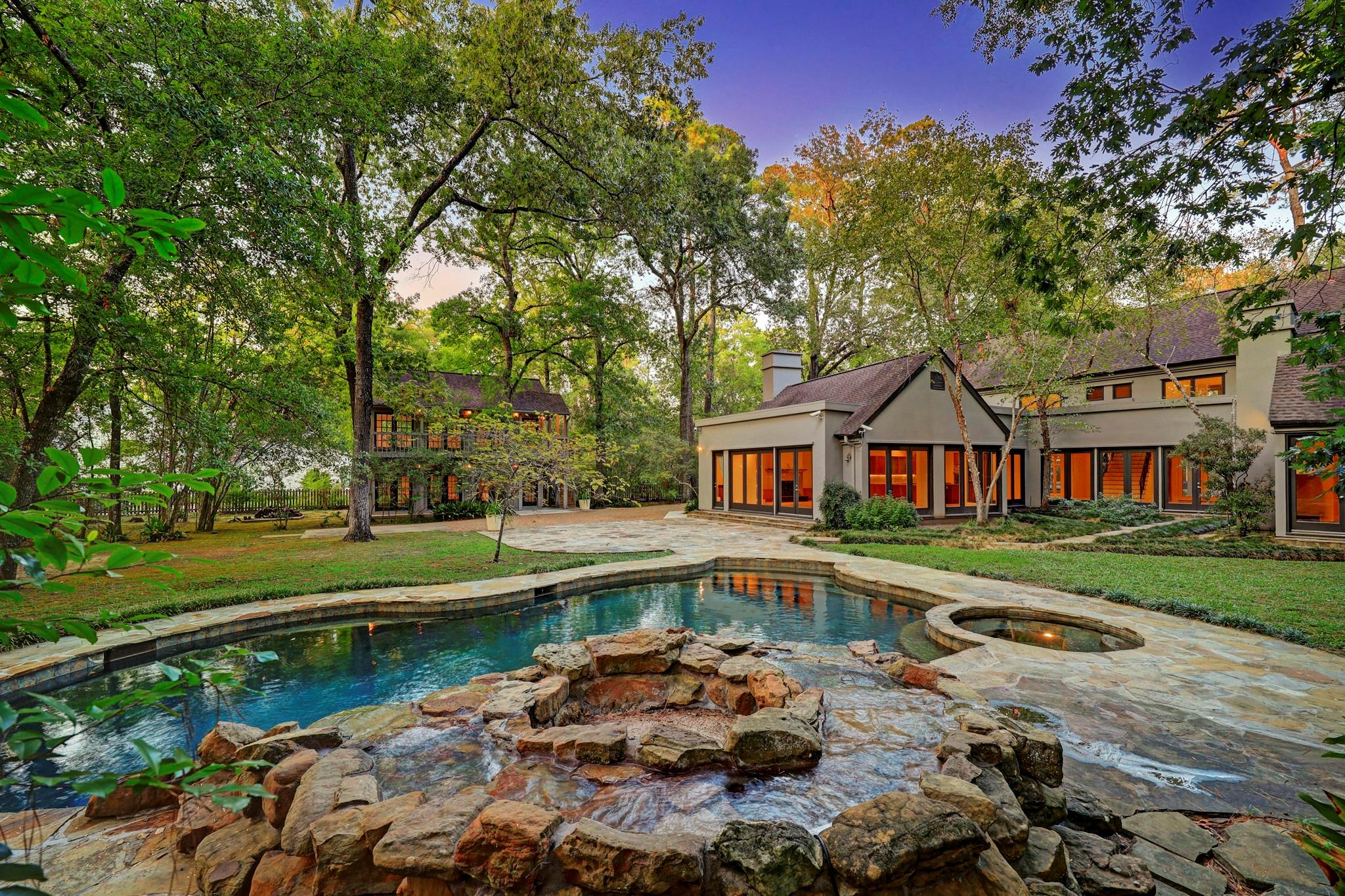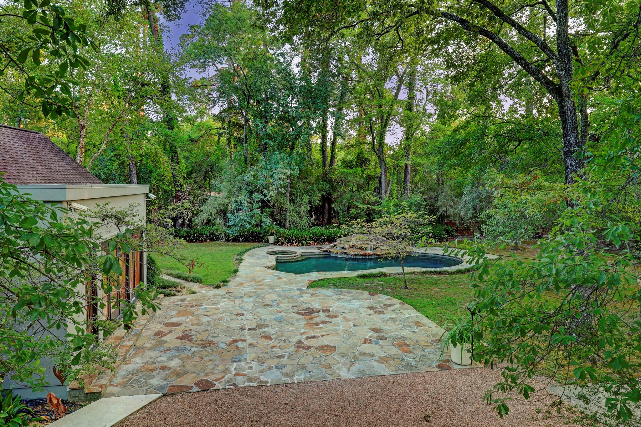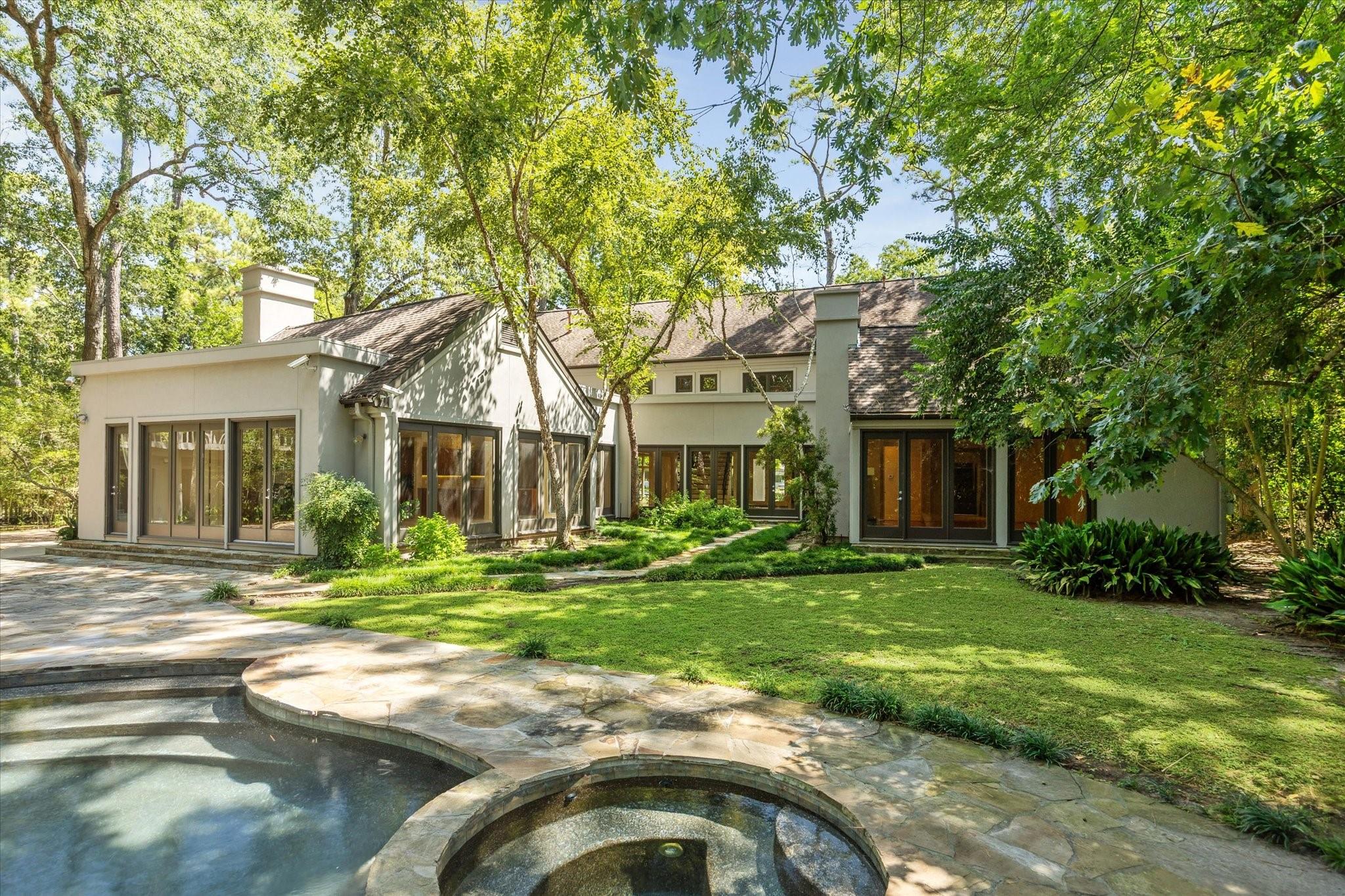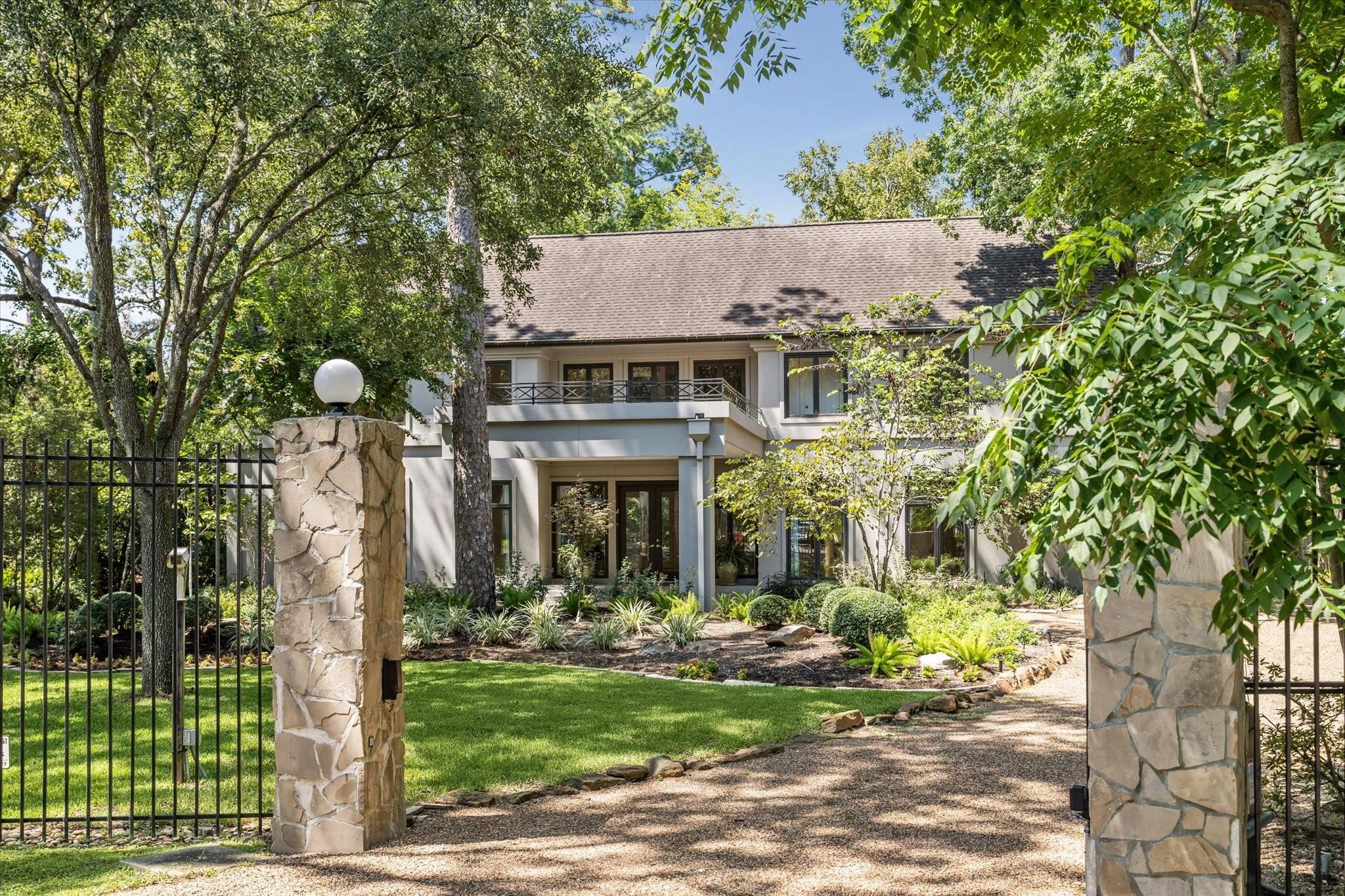 Fantastic opportunity to purchase a custom built home with an acre lot on a quiet, tree lined drive! This unique home boasts a ground floor living floorplan with fantastic entertainment potential as well as a ground floor primary bedroom with excellent closet space. Spacious foyer blends into the living room with green views of the front grounds and backyard with beautiful pool. Updated kitchen enjoys a stainless steel appliance package, large island, custom cabinetry, and serving counter to the family room with fantastic views of the backyard. Four secondary bedrooms upstairs share 2 full bathrooms and a flex room. Detached guest house has a ground floor gym room with half bath and a guest suite with kitchen and full bathroom upstairs. Inviting pool in the backyard enjoys fantastic privacy, heated spa, and a soothing rock water feature. Fully gated property, generator installed, robust security system, well maintained, and move-in ready! All stucco replaced in spring of 2024.