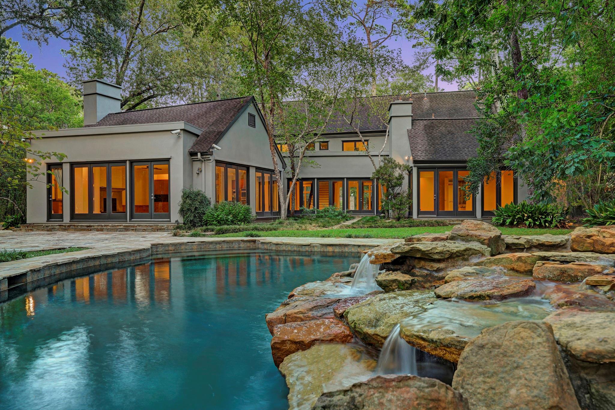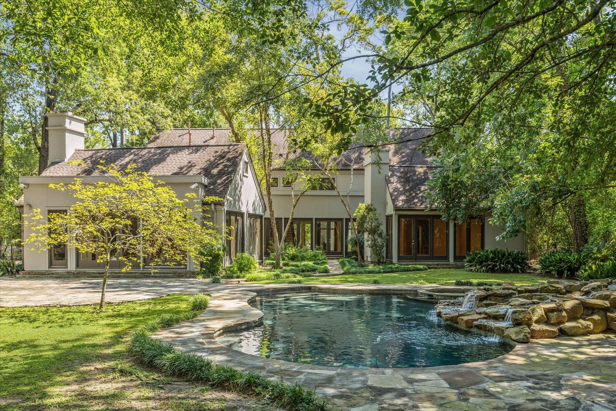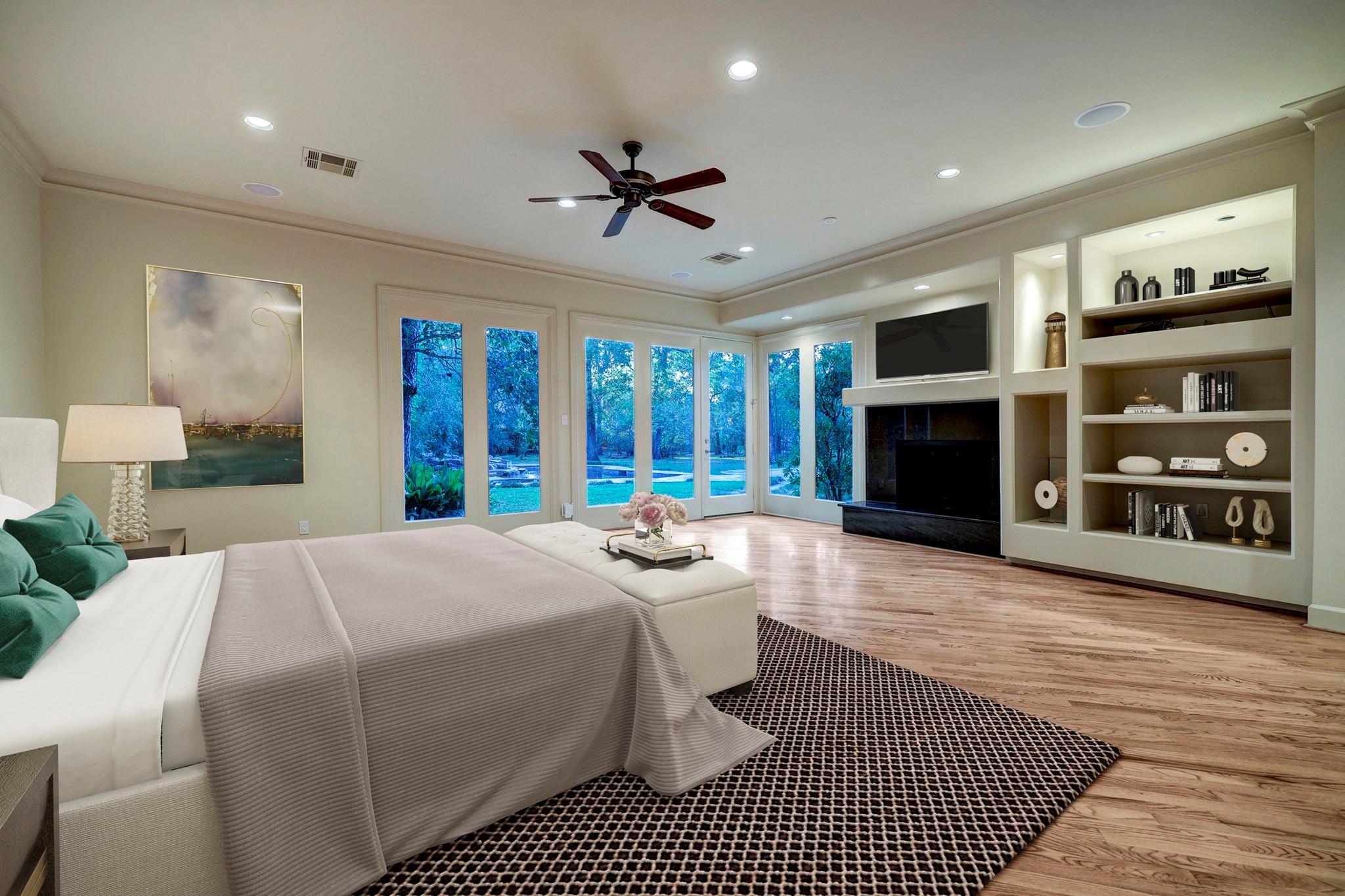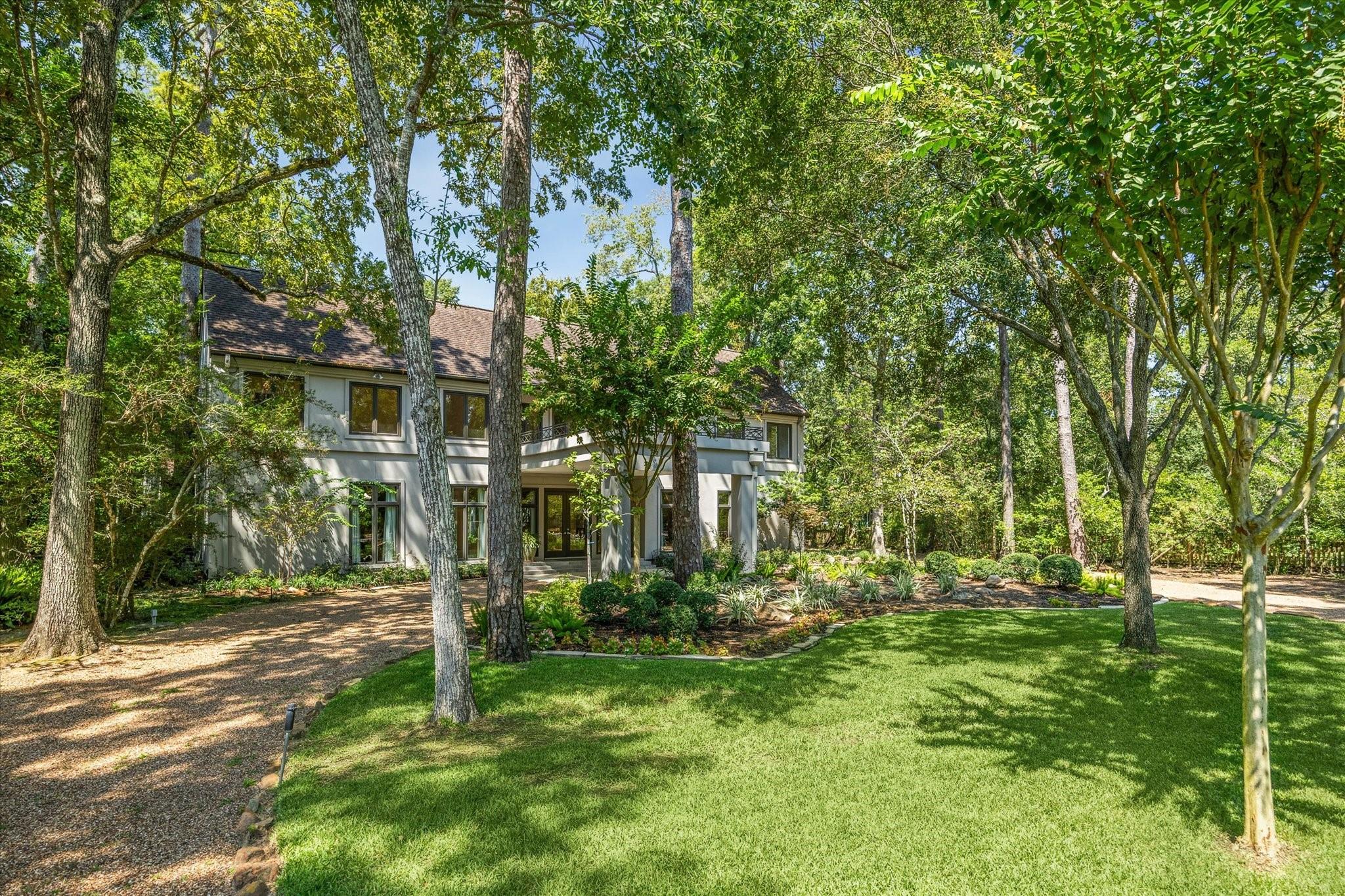 Fantastic opportunity to purchase a custom built home with an acre lot on a quiet, tree lined drive! This unique home boasts a ground floor living floorplan with fantastic entertainment potential as well as a ground floor primary bedroom with excellent closet space. Spacious foyer blends into the living room with green views of the front grounds and backyard with beautiful pool. Updated kitchen enjoys a stainless steel appliance package, large island, custom cabinetry, and serving counter to the family room with fantastic views of the backyard. Four secondary bedrooms upstairs share 2 full bathrooms and a flex room. Detached guest house has a ground floor gym room with half bath and a guest suite with kitchen and full bathroom upstairs. Inviting pool in the backyard enjoys fantastic privacy, heated spa, and a soothing rock water feature. Fully gated property, generator installed, robust security system, well maintained, and move-in ready! All stucco replaced in spring of 2024.