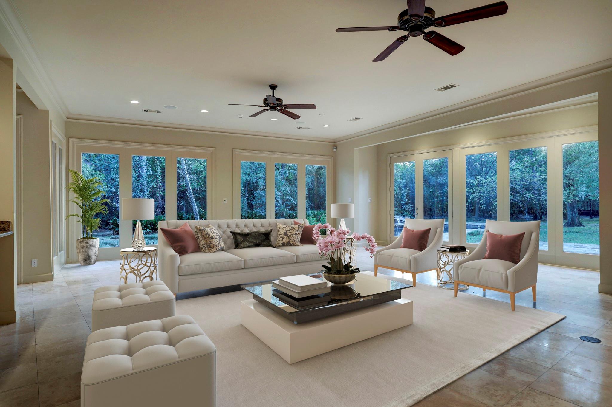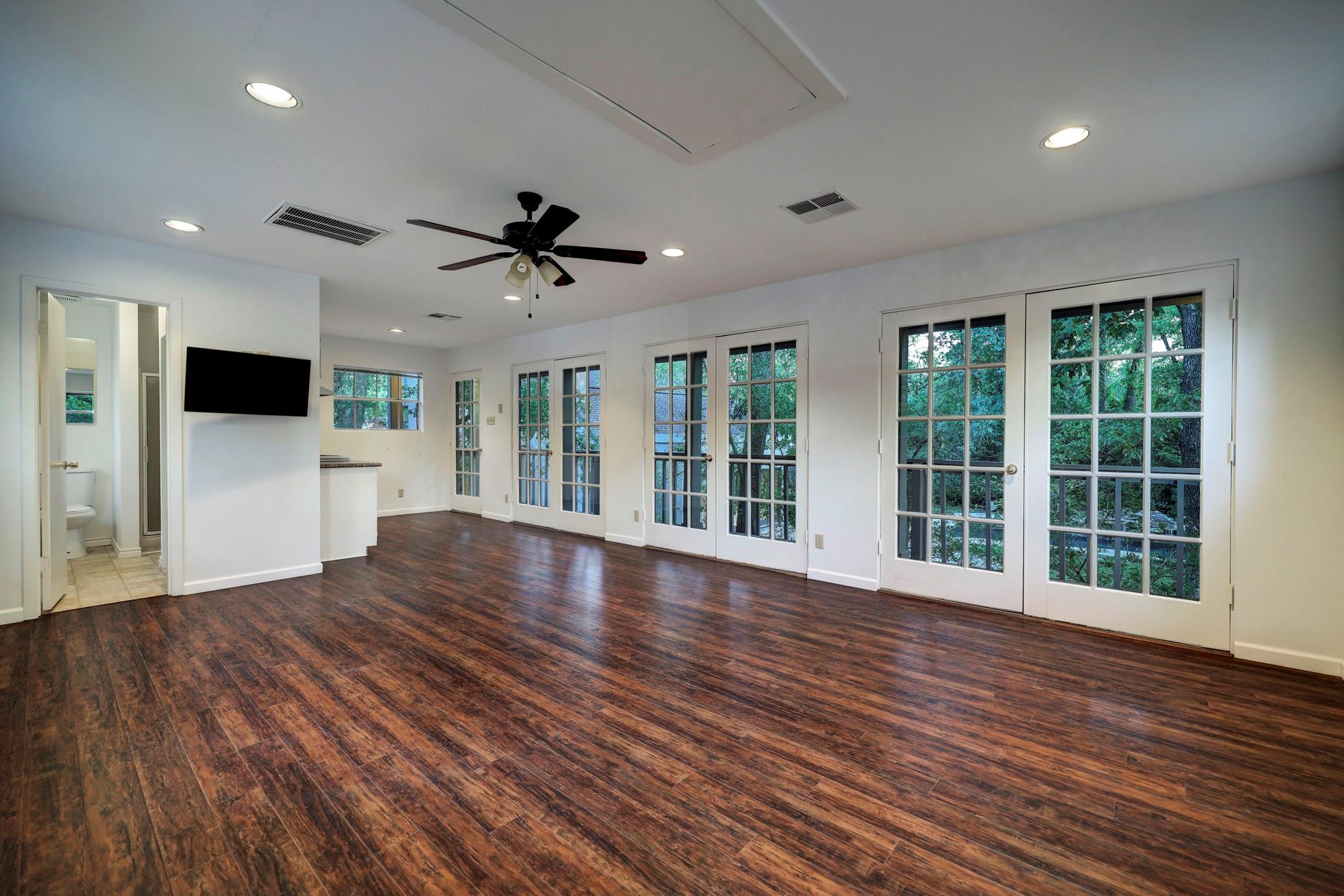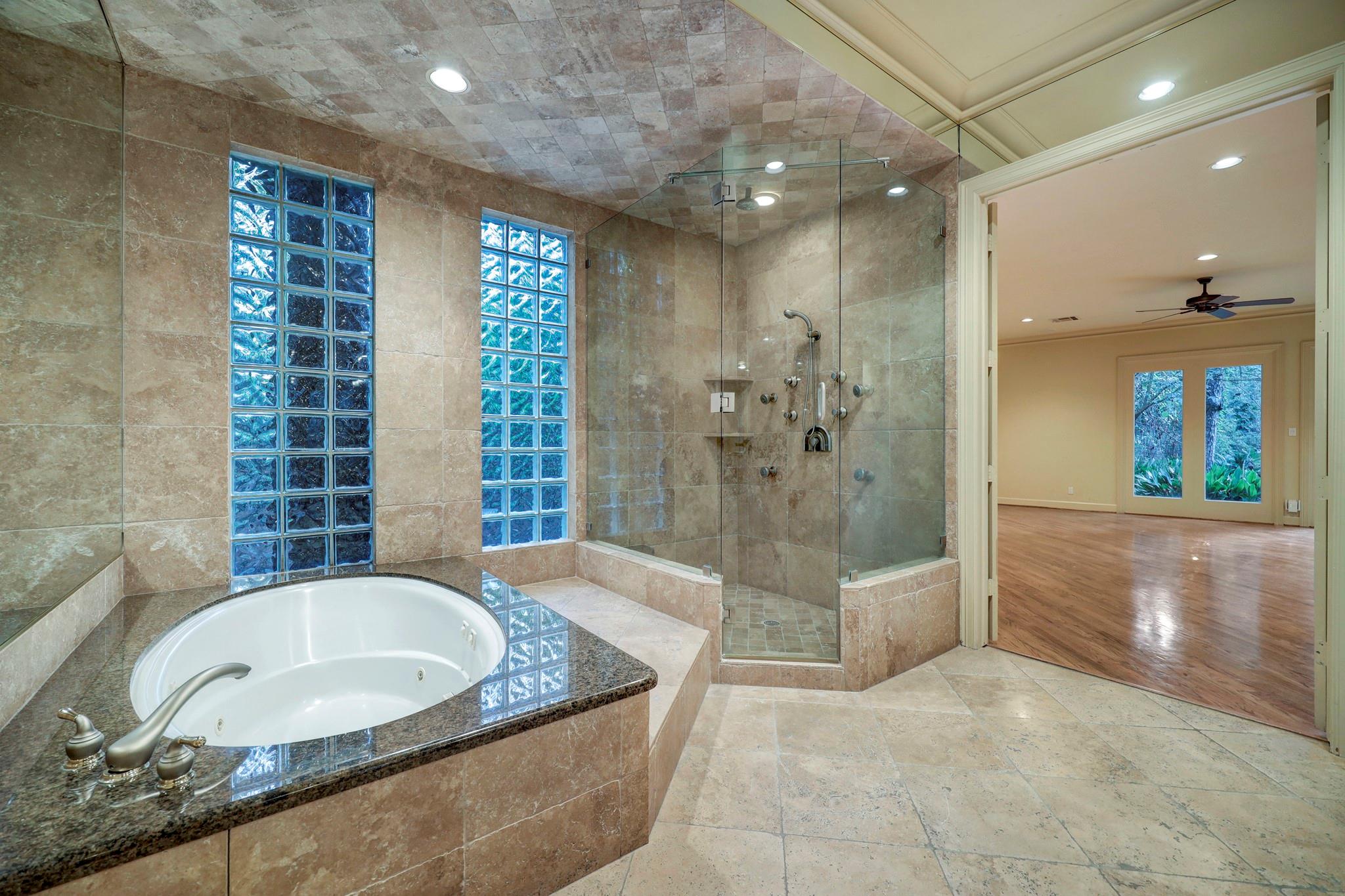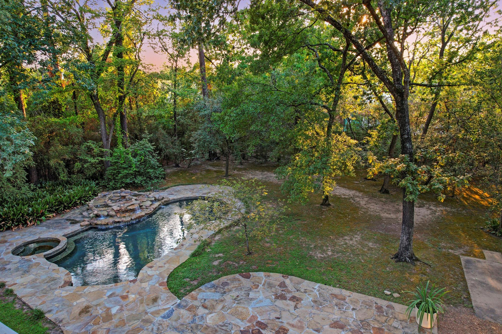Fantastic opportunity to purchase a custom built home with an acre lot on a quiet, tree lined drive! This unique home boasts a ground floor living floorplan with fantastic entertainment potential as well as a ground floor primary bedroom with excellent closet space. Spacious foyer blends into the living room with green views of the front grounds and backyard with beautiful pool. Updated kitchen enjoys a stainless steel appliance package, large island, custom cabinetry, and serving counter to the family room with fantastic views of the backyard. Four secondary bedrooms upstairs share 2 full bathrooms and a flex room. Detached guest house has a ground floor gym room with half bath and a guest suite with kitchen and full bathroom upstairs. Inviting pool in the backyard enjoys fantastic privacy, heated spa, and a soothing rock water feature. Fully gated property, generator installed, robust security system, well maintained, and move-in ready! All stucco replaced in spring of 2024.