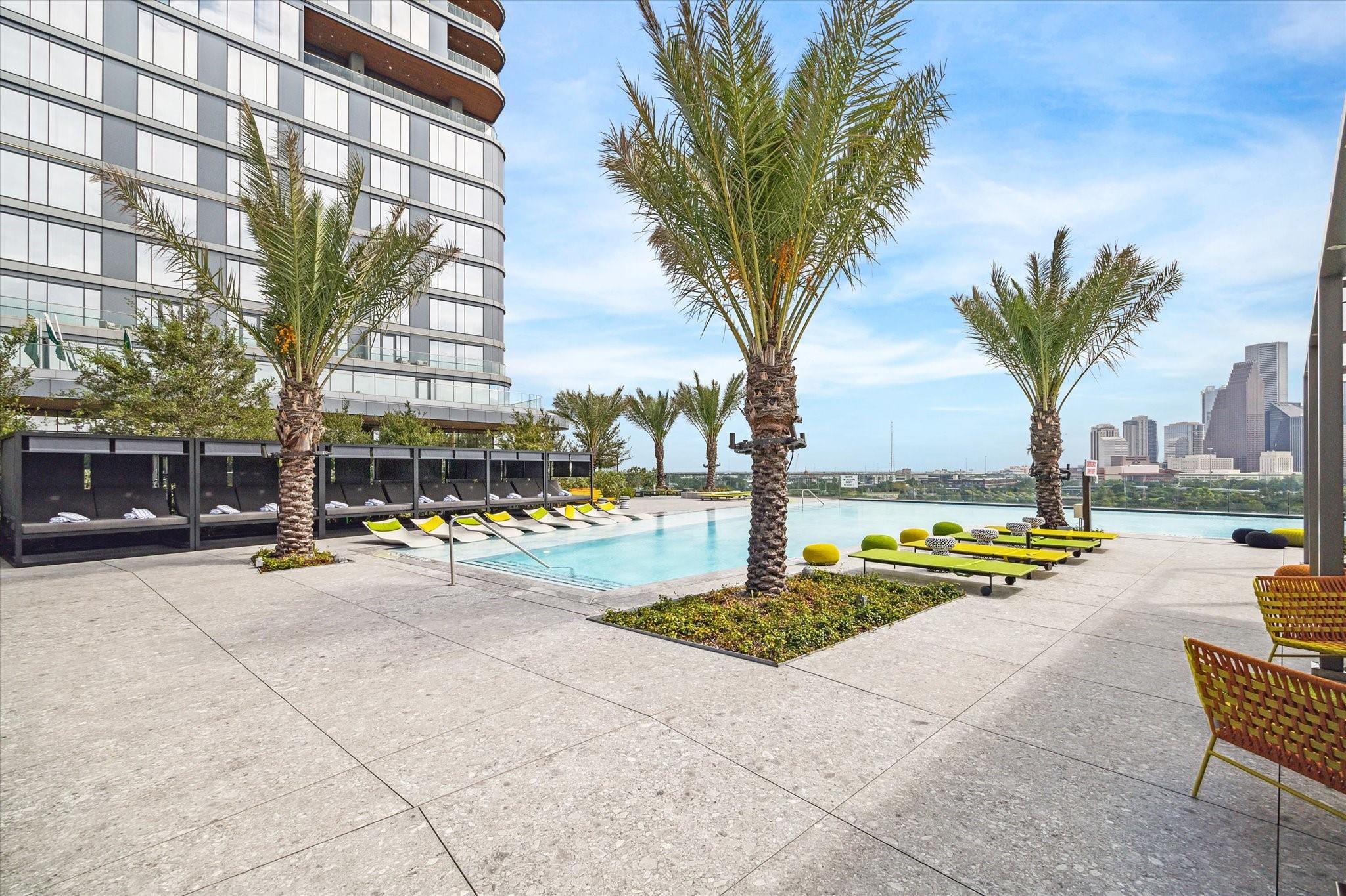 Experience luxury redefined at The Allen, a sophisticated condominium community developed in conjuncture with the renowned Thompson hotel. This 2 bed 2.5 bathroom condo has a spacious floorplan with stunning views over the Buffalo Bayou and Memorial Park, and all the amenities of a world class resort! Residents at The Allen enjoy numerous private amenities, access to all the amenities available at the Thompson Hotel (such as room service and a full spa), discounts at the on-site restaurants, and more! The modern kitchen boasts Pedini cabinetry, Thermador appliances, porcelain counters, and a huge island. Both bedrooms enjoy en-suite baths and spacious closets that are currently a blank slate; build to suit. This unit enjoys 2 parking spaces and a private 3-car garage; a feature that is sold out in this building! The unit next door is for sale by the same owner; it would be an excellent opportunity to create a custom oversized corner unit.