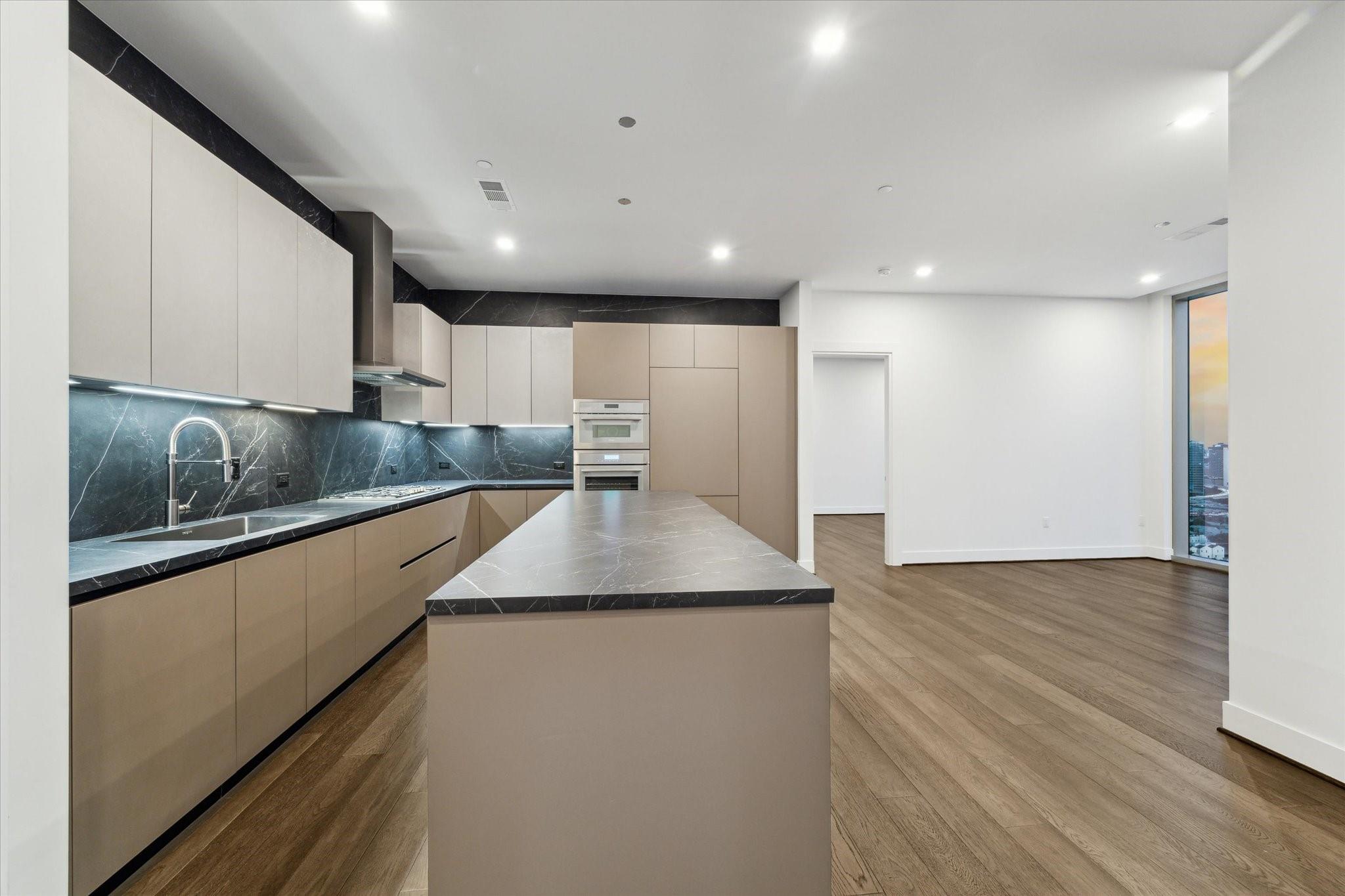 Experience luxury redefined at The Allen, a sophisticated condominium community developed in conjuncture with the renowned Thompson hotel. This 2 bed 2.5 bathroom condo has a spacious corner-unit floorplan with stunning views over the Buffalo Bayou and Memorial Park, and all the amenities of a world class resort! Residents at The Allen enjoy numerous private amenities, access to all the amenities available at the Thompson Hotel (such as room service and a full spa), discounts at the on-site restaurants, and more! The modern kitchen boasts Pedini cabinetry, Thermador appliances, porcelain counters, and a huge island. Both bedrooms enjoy en-suite baths and spacious closets that are currently a blank slate; build to suit. A Spacious patio offers corner views to the South and the West, with a glimpse of the downtown skyline and built in grill! This premier location is just minutes from downtown, and is walking distance to several restaurants and some of the best walking trails in Houston.