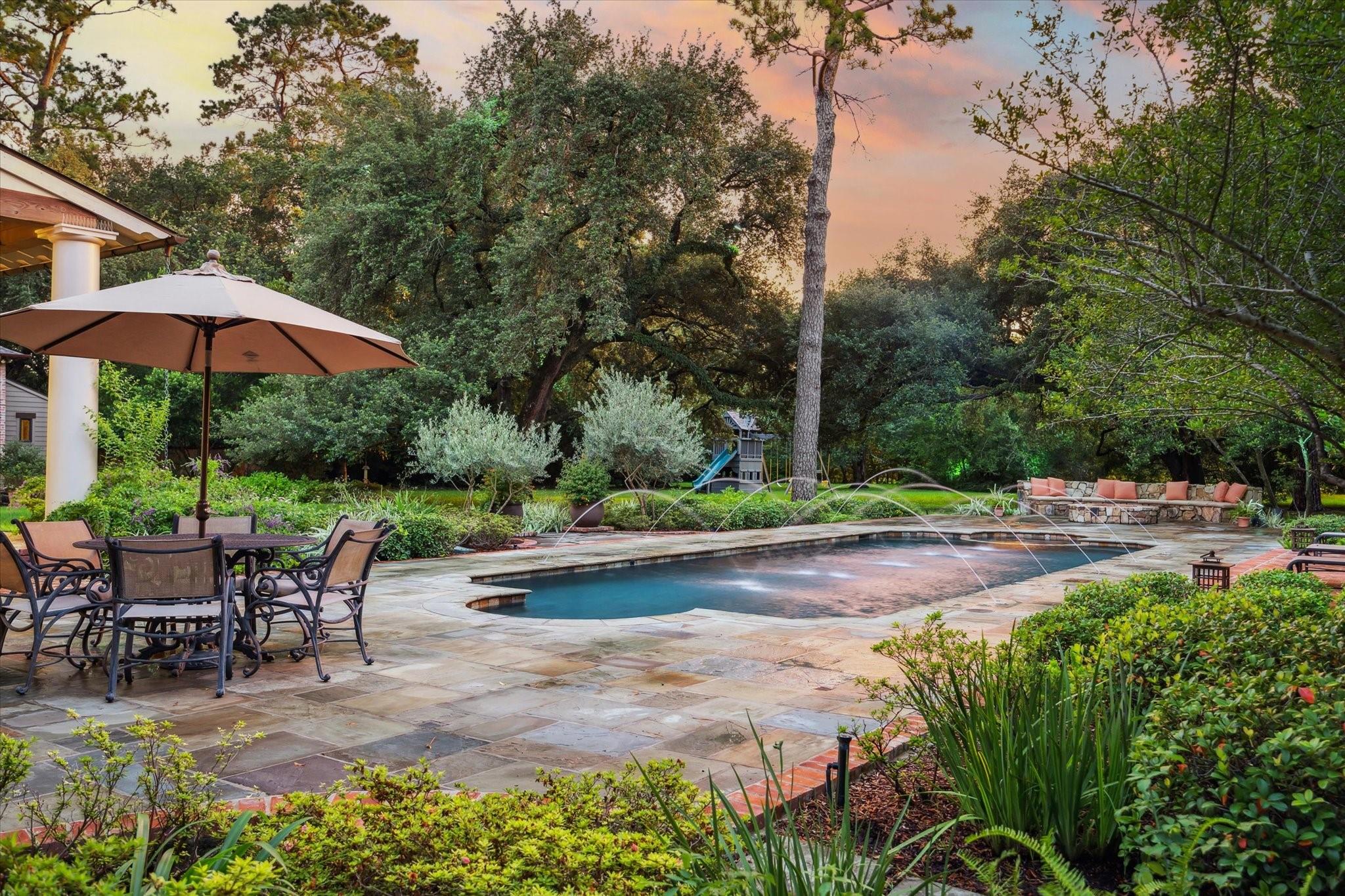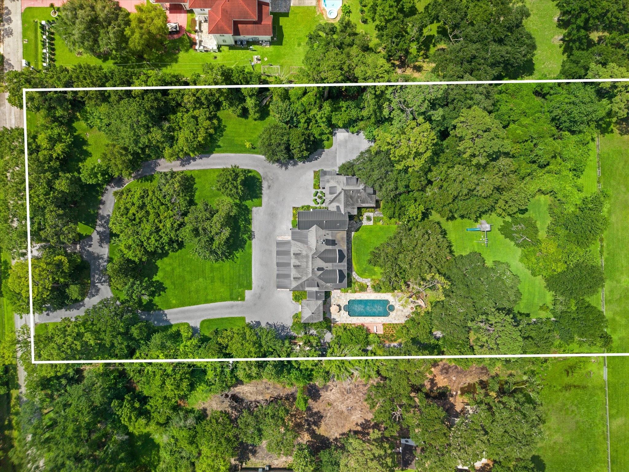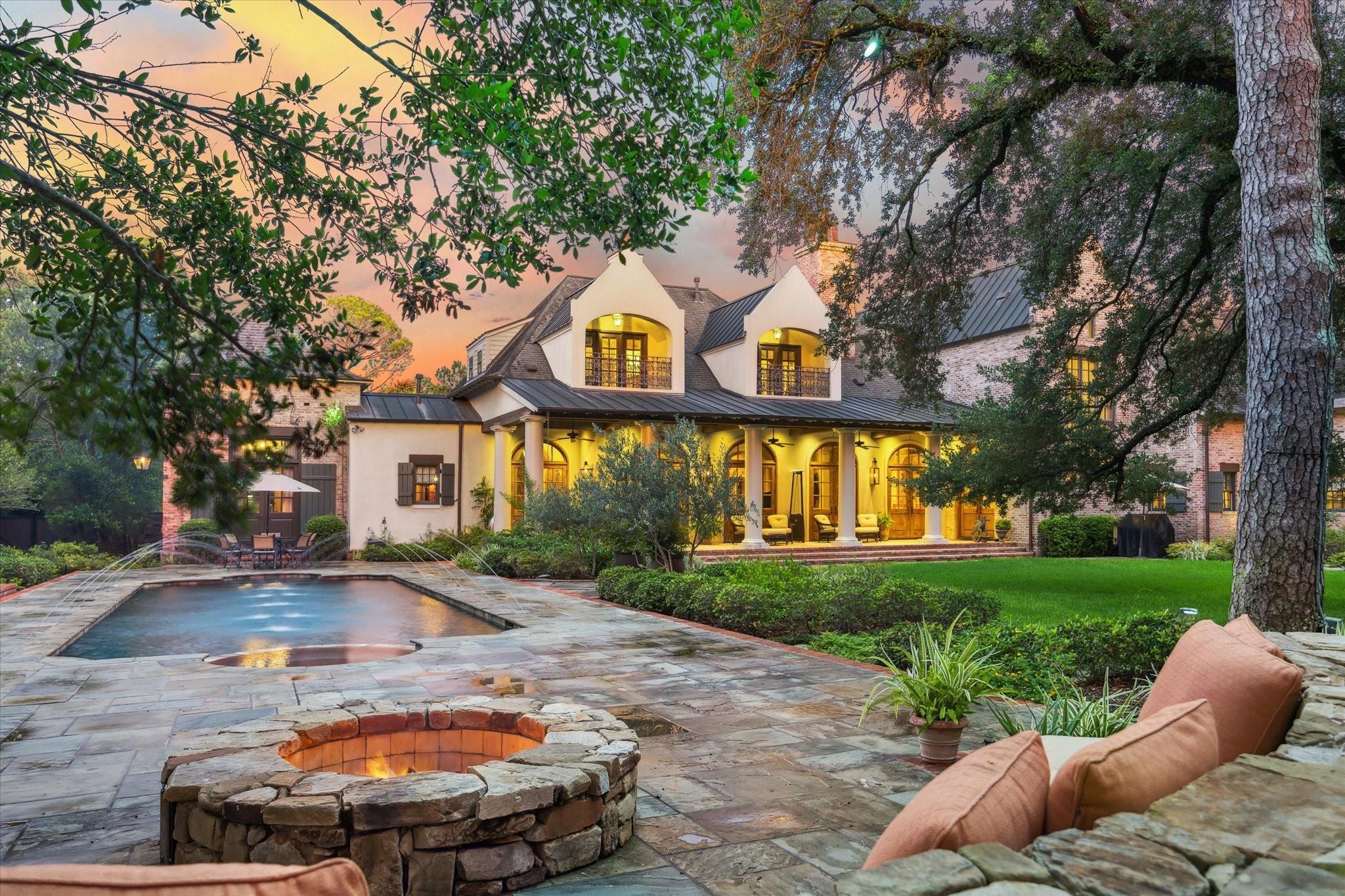 This Southern French Creole Colonial estate offers serene country living with city convenience. Designed by Robert Dame, built by Mission Contractors, with interiors by Sandy Lucas of Lucas/Eilers and custom plasterwork by Leslie Sinclair of Segreto. Set on 3.8 acres, the property features a circle drive, ample parking, pool/spa, fire pit, pasture, two climate-controlled sheds, and a whole-home generator. Inside, Venetian plaster walls, an 18th-century French limestone fireplace, and 19th-century reclaimed wood floors add timeless elegance. The main level is ideal for daily living and entertaining, with spaces centered around a piano-ready salon. Upstairs, all bedrooms have en-suite baths, and the primary suite includes a large closet and two private balconies. A rare blend of history, luxury, and comfort.
