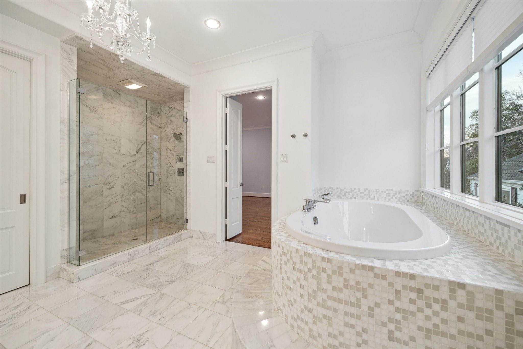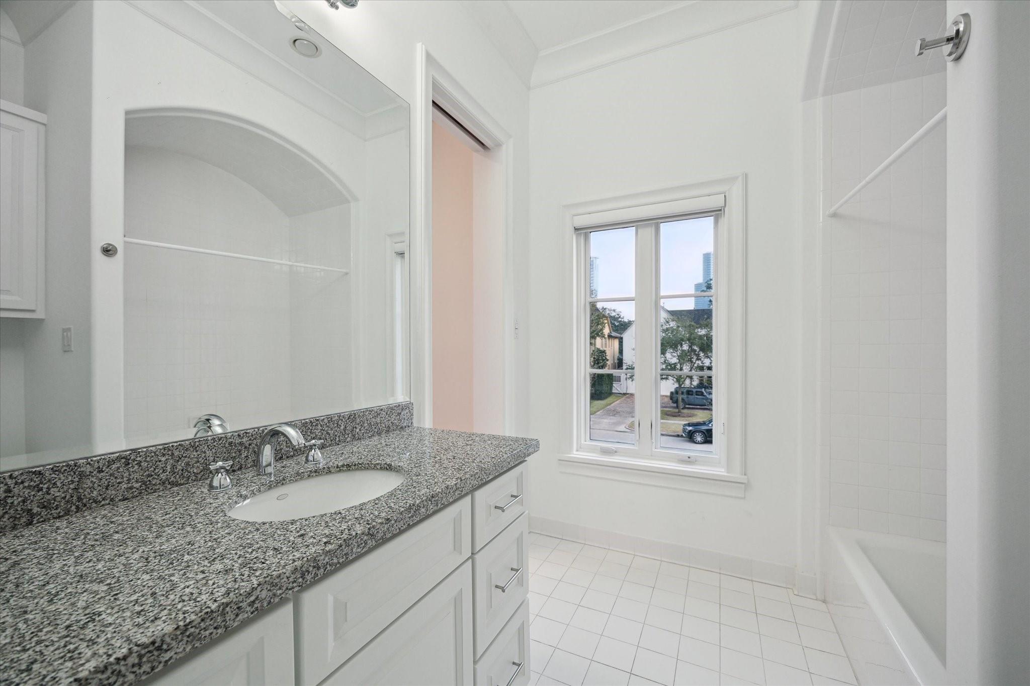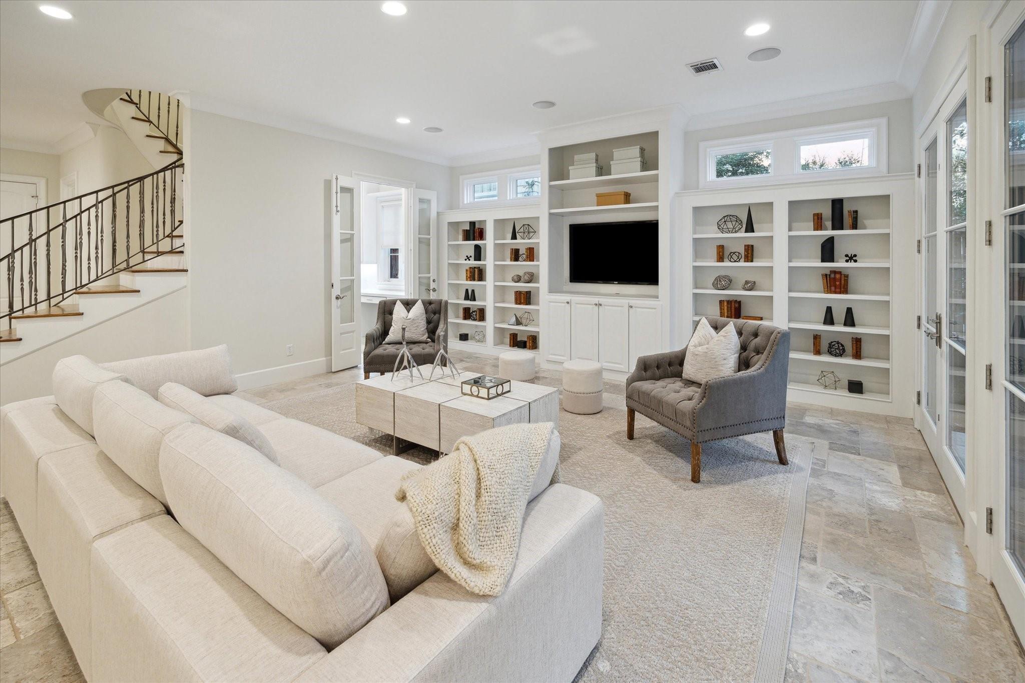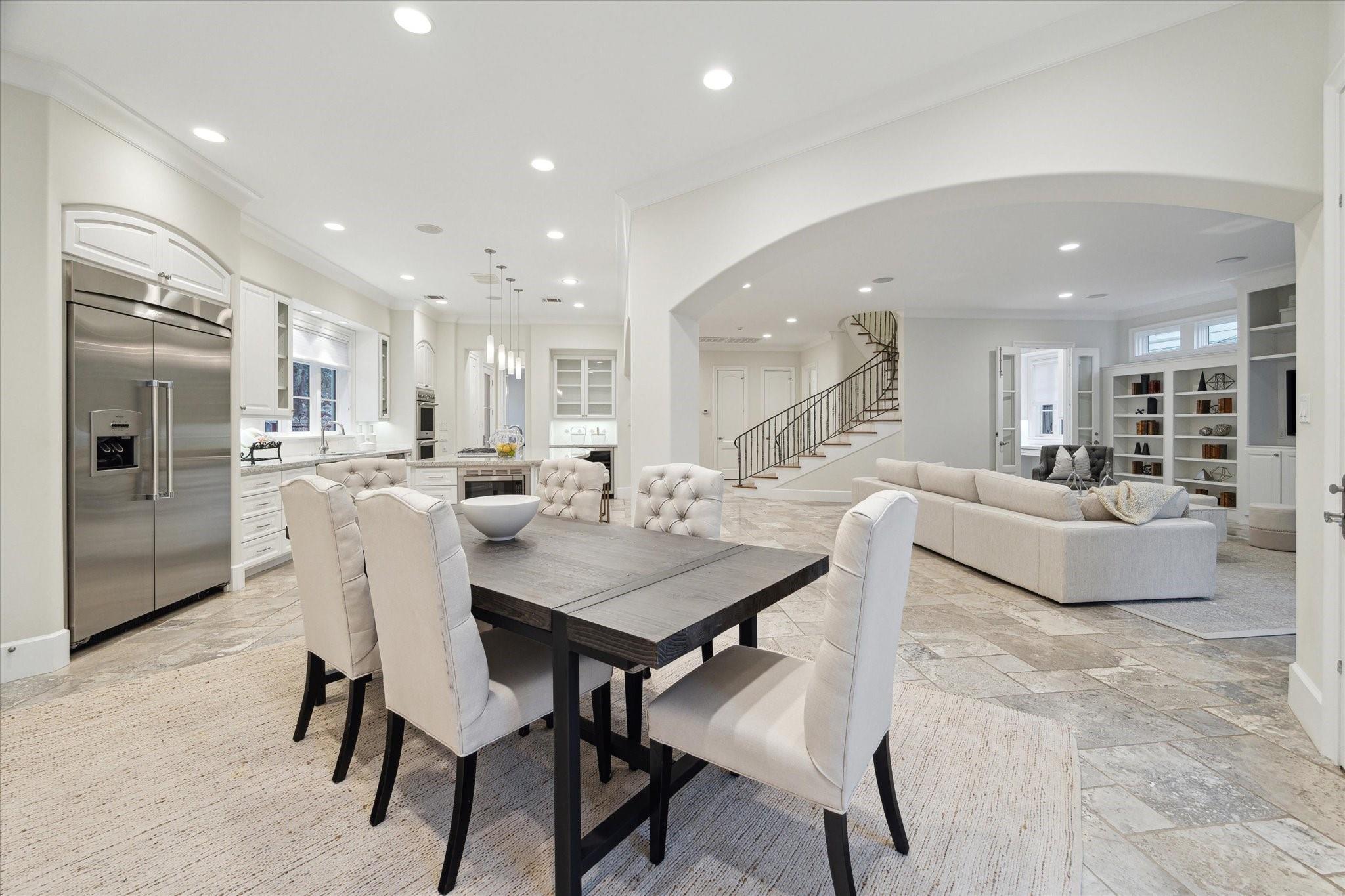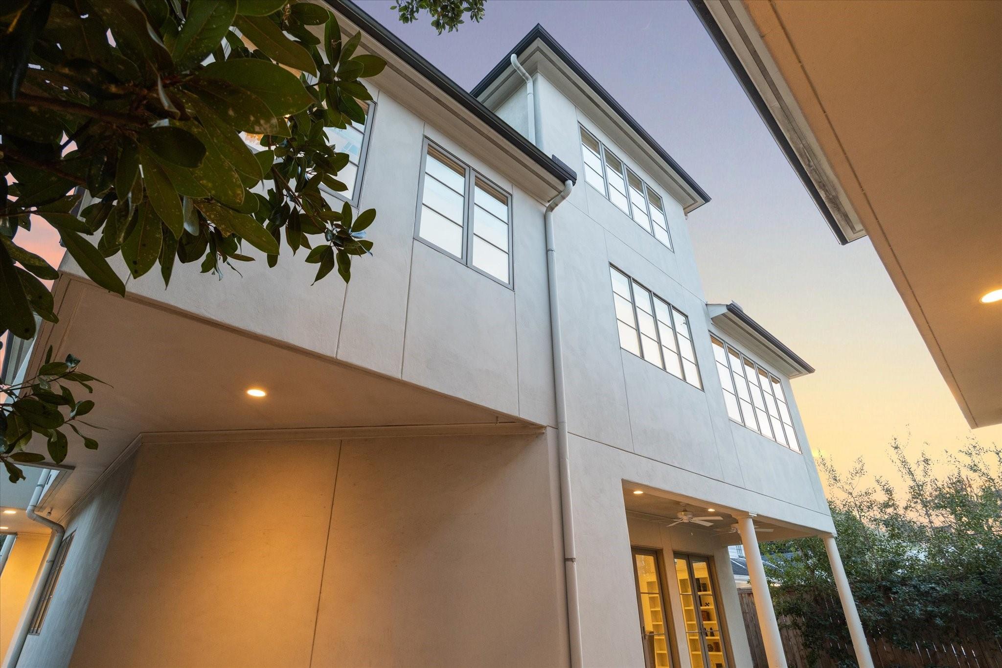This Avalon/River Oaks home, custom-built by Bardwell, blends timeless design with traditional and contemporary elements. It features crown moldings, tumbled travertine floors, 10' ceilings, en-suite baths, and light-filled rooms. The gracious entry foyer is flanked by formal living and dining rooms, leading to an open kitchen and family room. The kitchen boasts a large granite island, Thermador gas cooktop, dual ovens, and dual Asko dishwashers. Private office is downstairs and there is space for an elevator. Upstairs, the primary suite, three secondary bedrooms, and a bedroom/study await. All bedrooms enjoy spacious closets. The third floor offers a potential bedroom or game room with a full bath. A separate garage apartment includes a kitchen/living area, bedroom, and bath. The covered back porch overlooks a landscaped backyard with a small heated pool, pool bath accessible from outdoors, and green space. Located within walking distance to schools, fine restaurants, and shopping.