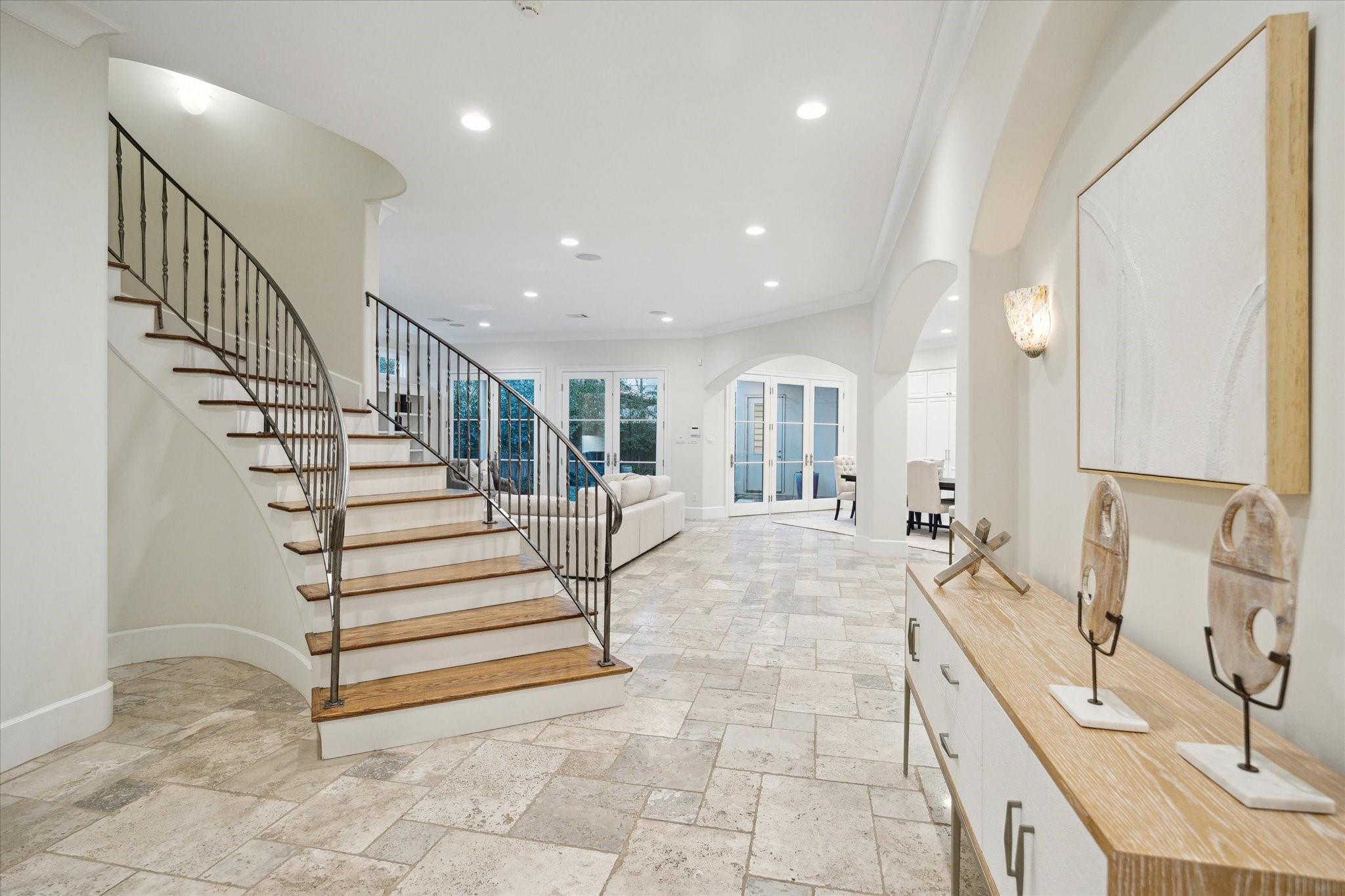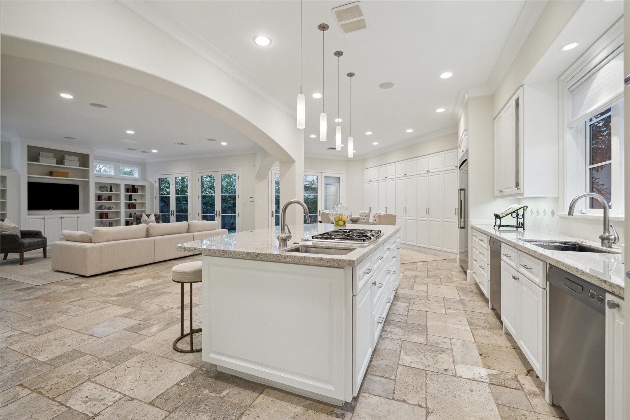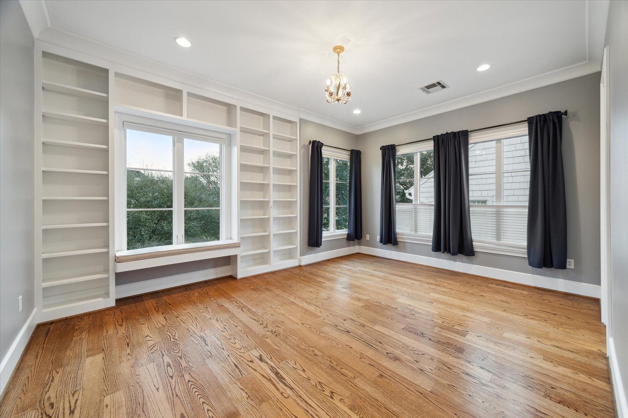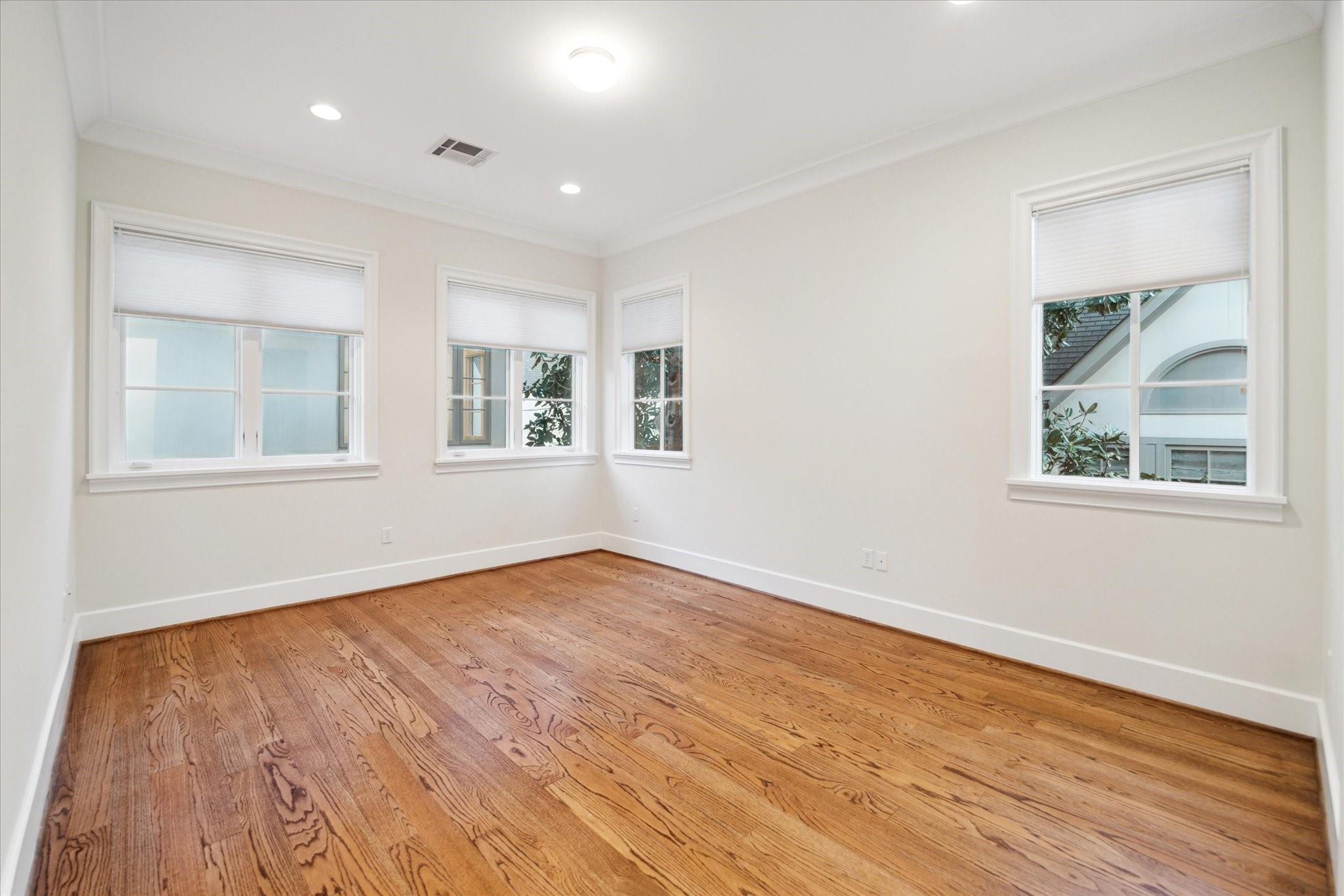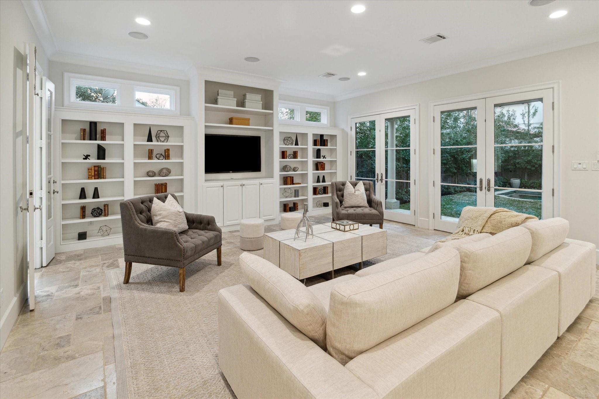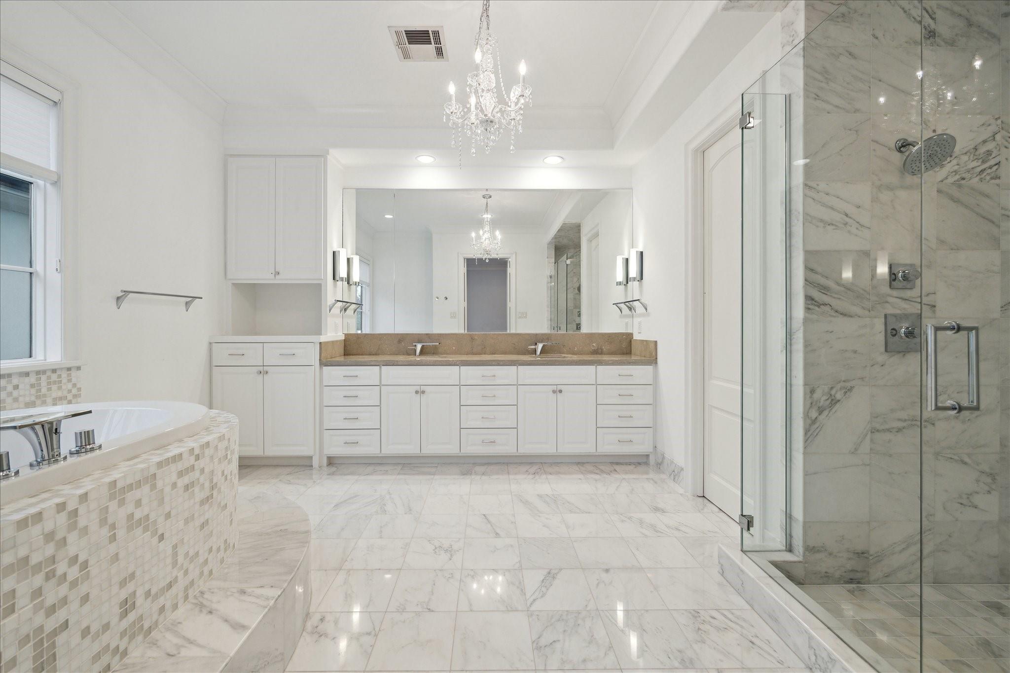 This Avalon/River Oaks home, custom-built by Bardwell, blends timeless design with traditional and contemporary elements. It features crown moldings, tumbled travertine floors, 10' ceilings, en-suite baths, and light-filled rooms. The gracious entry foyer is flanked by formal living and dining rooms, leading to an open kitchen and family room. The kitchen boasts a large granite island, Thermador gas cooktop, dual ovens, and dual Asko dishwashers. Private office is downstairs and there is space for an elevator. Upstairs, the primary suite, three secondary bedrooms, and a bedroom/study await. All bedrooms enjoy spacious closets. The third floor offers a potential bedroom or game room with a full bath. A separate garage apartment includes a kitchen/living area, bedroom, and bath. The covered back porch overlooks a landscaped backyard with a small heated pool, pool bath accessible from outdoors, and green space. Located within walking distance to schools, fine restaurants, and shopping.