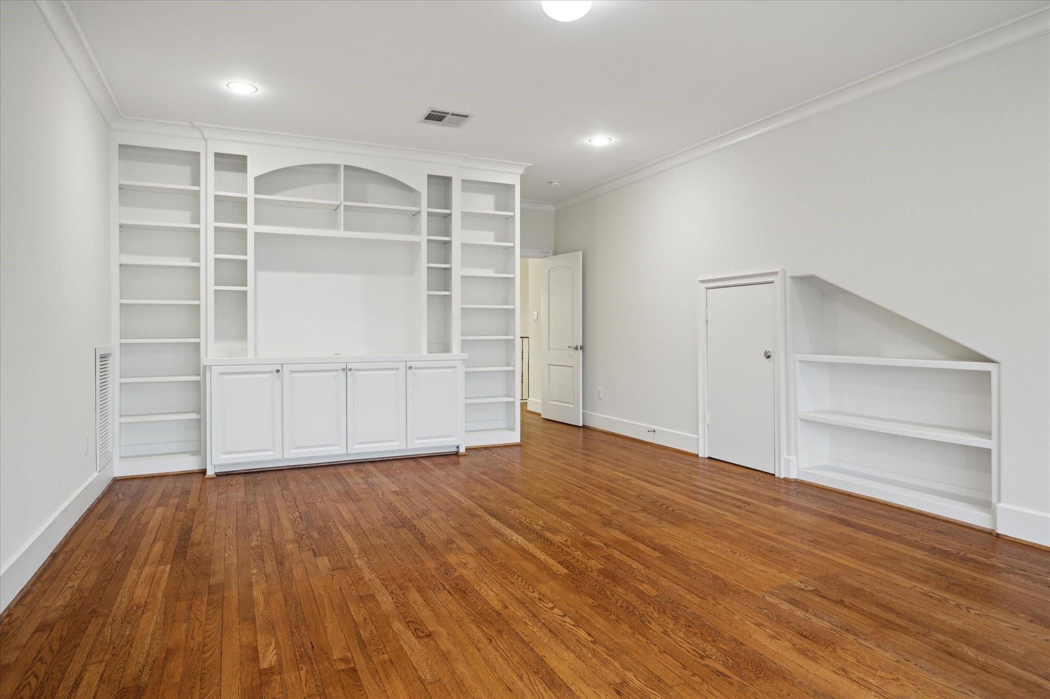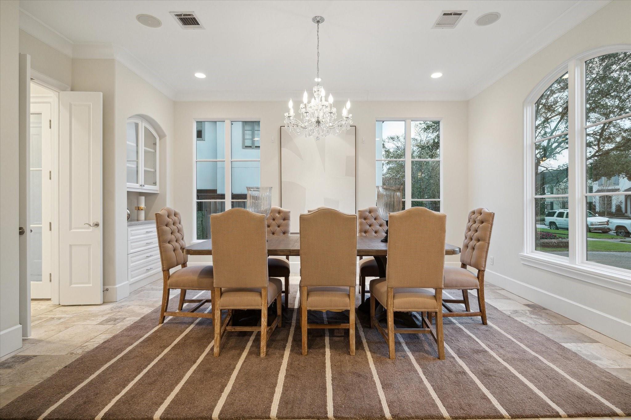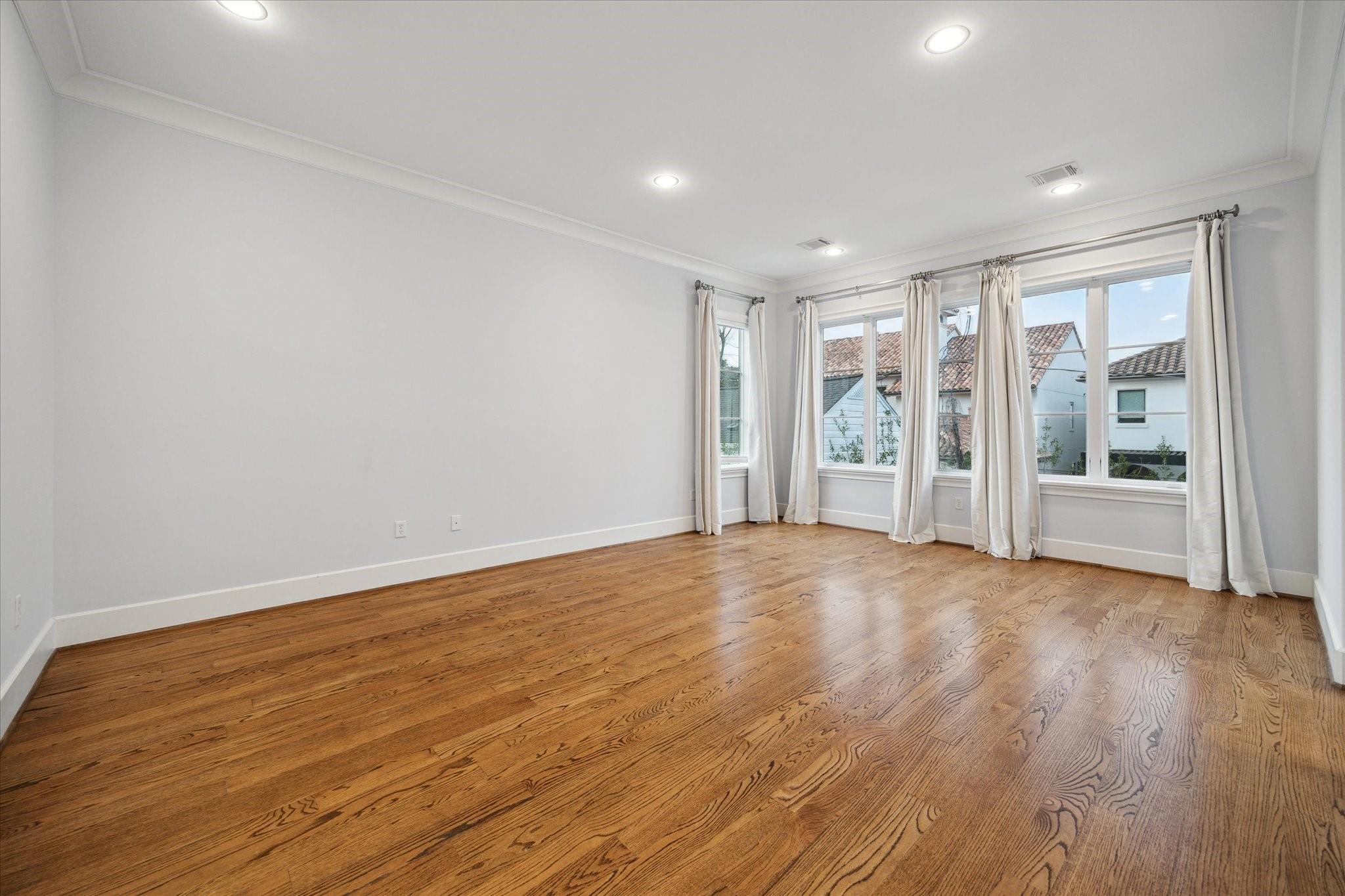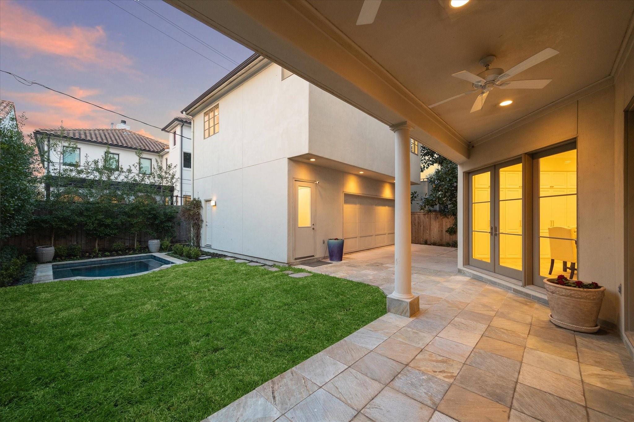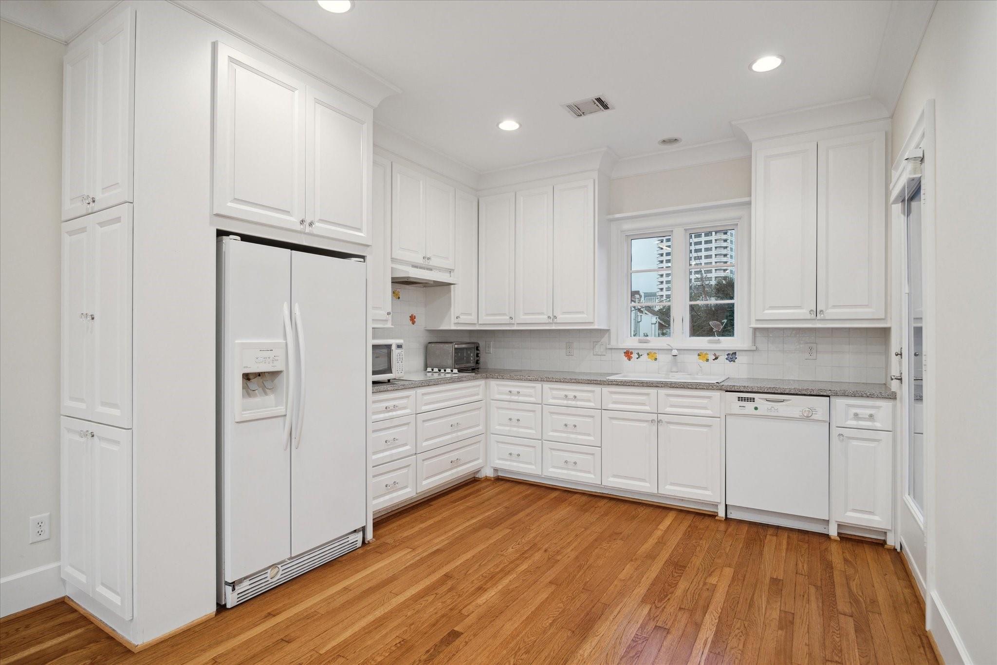 This Avalon/River Oaks home, custom-built by Bardwell, blends timeless design with traditional and contemporary elements. It features crown moldings, tumbled travertine floors, 10' ceilings, en-suite baths, and light-filled rooms. The gracious entry foyer is flanked by formal living and dining rooms, leading to an open kitchen and family room. The kitchen boasts a large granite island, Thermador gas cooktop, dual ovens, and dual Asko dishwashers. Private office is downstairs and there is space for an elevator. Upstairs, the primary suite, three secondary bedrooms, and a bedroom/study await. All bedrooms enjoy spacious closets. The third floor offers a potential bedroom or game room with a full bath. A separate garage apartment includes a kitchen/living area, bedroom, and bath. The covered back porch overlooks a landscaped backyard with a small heated pool, pool bath accessible from outdoors, and green space. Located within walking distance to schools, fine restaurants, and shopping.