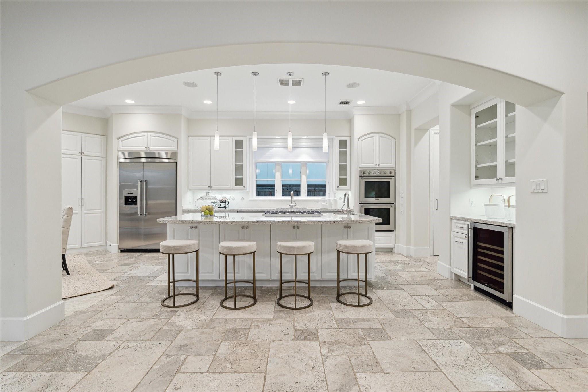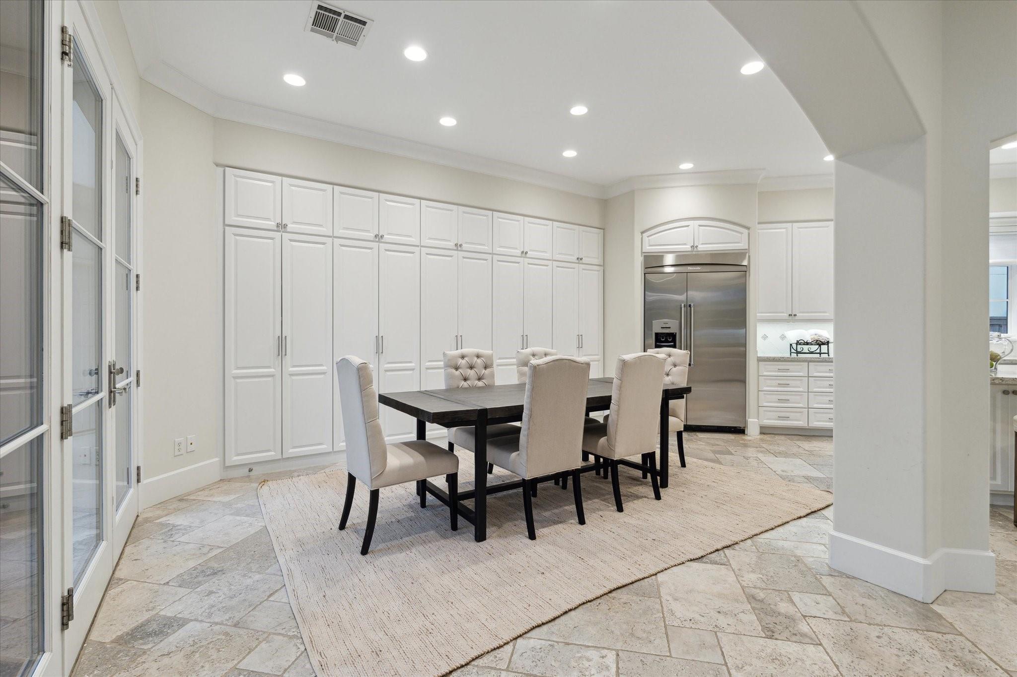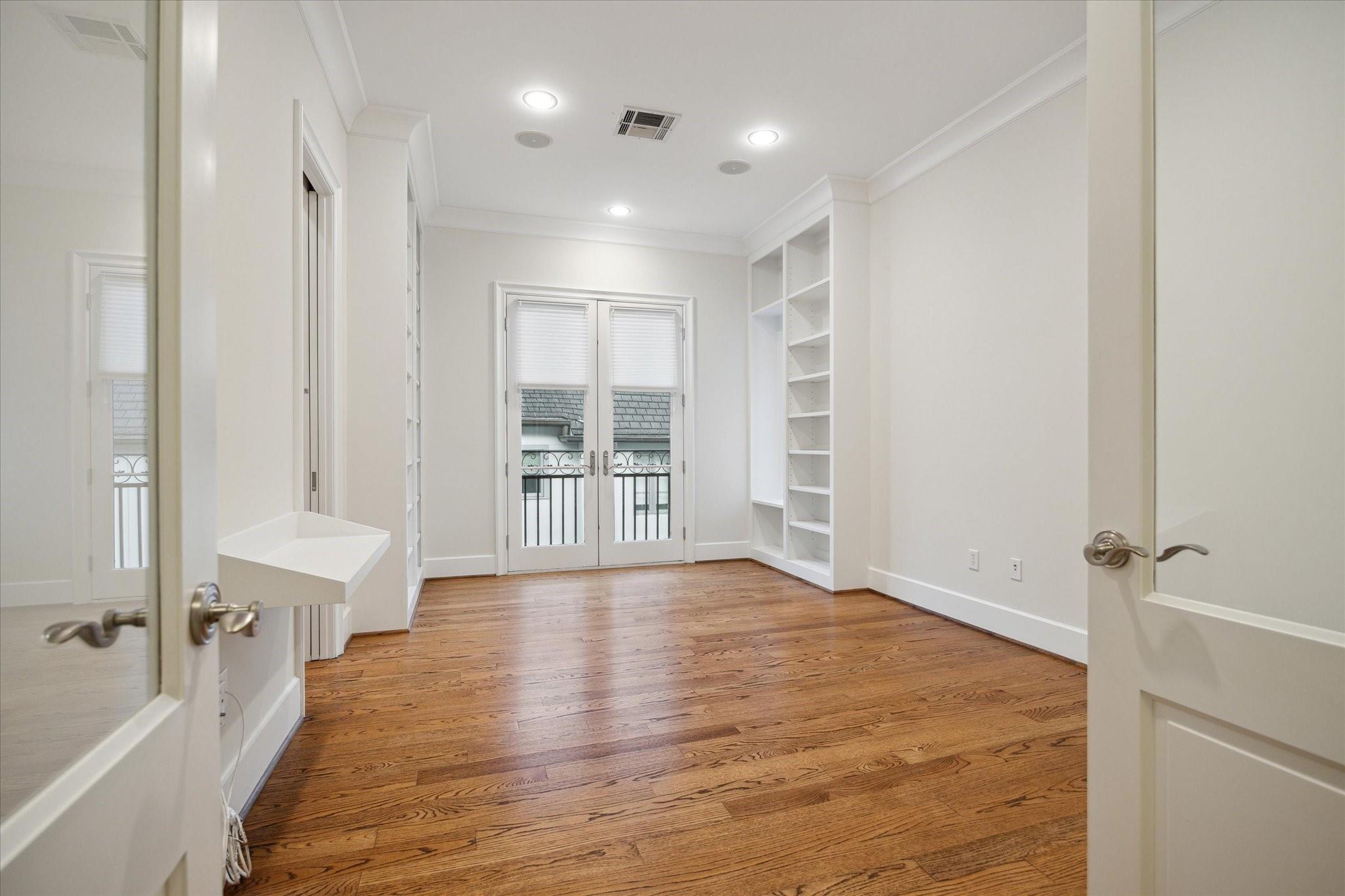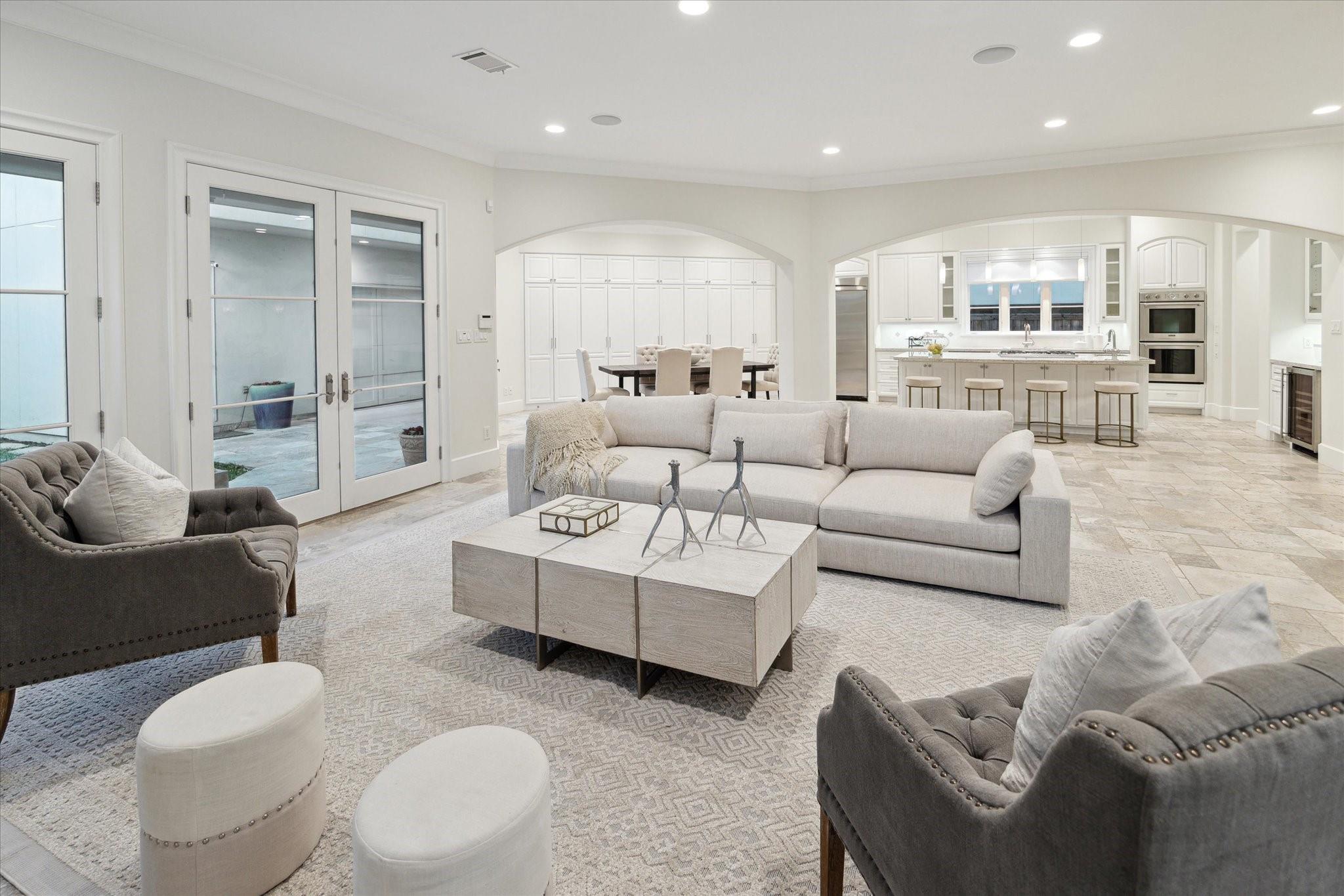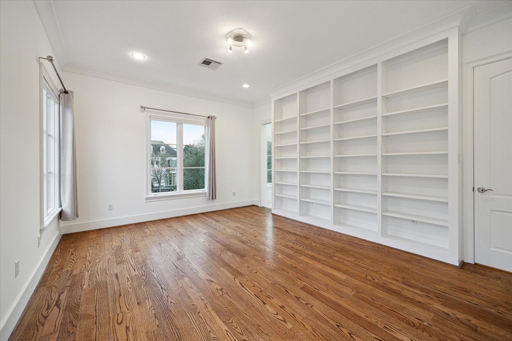This Avalon/River Oaks home, custom-built by Bardwell, blends timeless design with traditional and contemporary elements. It features crown moldings, tumbled travertine floors, 10' ceilings, en-suite baths, and light-filled rooms. The gracious entry foyer is flanked by formal living and dining rooms, leading to an open kitchen and family room. The kitchen boasts a large granite island, Thermador gas cooktop, dual ovens, and dual Asko dishwashers. Private office is downstairs and there is space for an elevator. Upstairs, the primary suite, three secondary bedrooms, and a bedroom/study await. All bedrooms enjoy spacious closets. The third floor offers a potential bedroom or game room with a full bath. A separate garage apartment includes a kitchen/living area, bedroom, and bath. The covered back porch overlooks a landscaped backyard with a small heated pool, pool bath accessible from outdoors, and green space. Located within walking distance to schools, fine restaurants, and shopping.