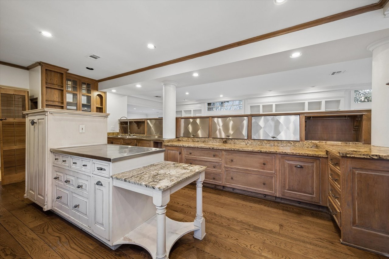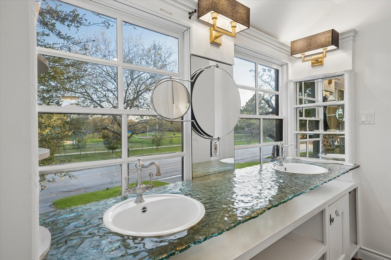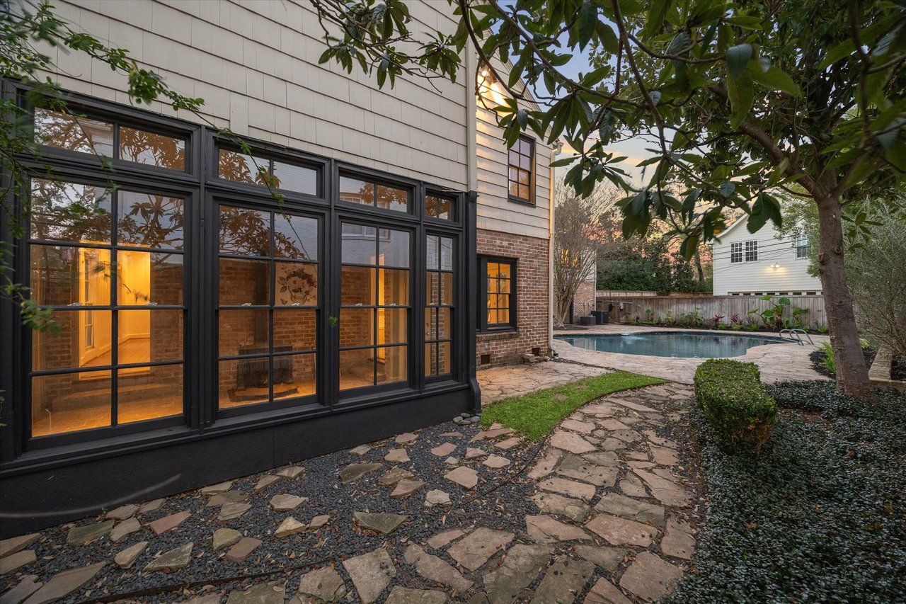 | Enjoy refined elegance in this traditional River Oaks home with classic finishes and a spacious floorplan. The circle driveway allows ample guest parking and leads to a gated motor court with 2-car garage, providing privacy and security. The foyer flows into the formal living and dining rooms, with wood paneled walls and antique hardwood floors; as well as a great room ideal for entertaining. The chef's kitchen is equipped with robust food preparation areas, restaurant style sinks, granite countertops, and opens up to the family room and breakfast area. Upstairs, all bedrooms have en-suite closets and bathrooms, and a covered patio runs the length of the home to provide easy outdoor access. The primary suite boasts two walk-in closets, a light-filled bathroom, and a private sitting room that could be converted into additional closet/bathroom space. Skip the River Oaks carpool line with this home, it is across the street! Minutes away from St. John's and River Oaks area shopping! | |||||||
