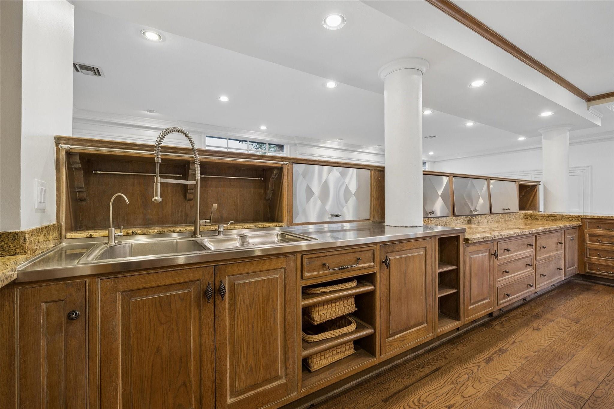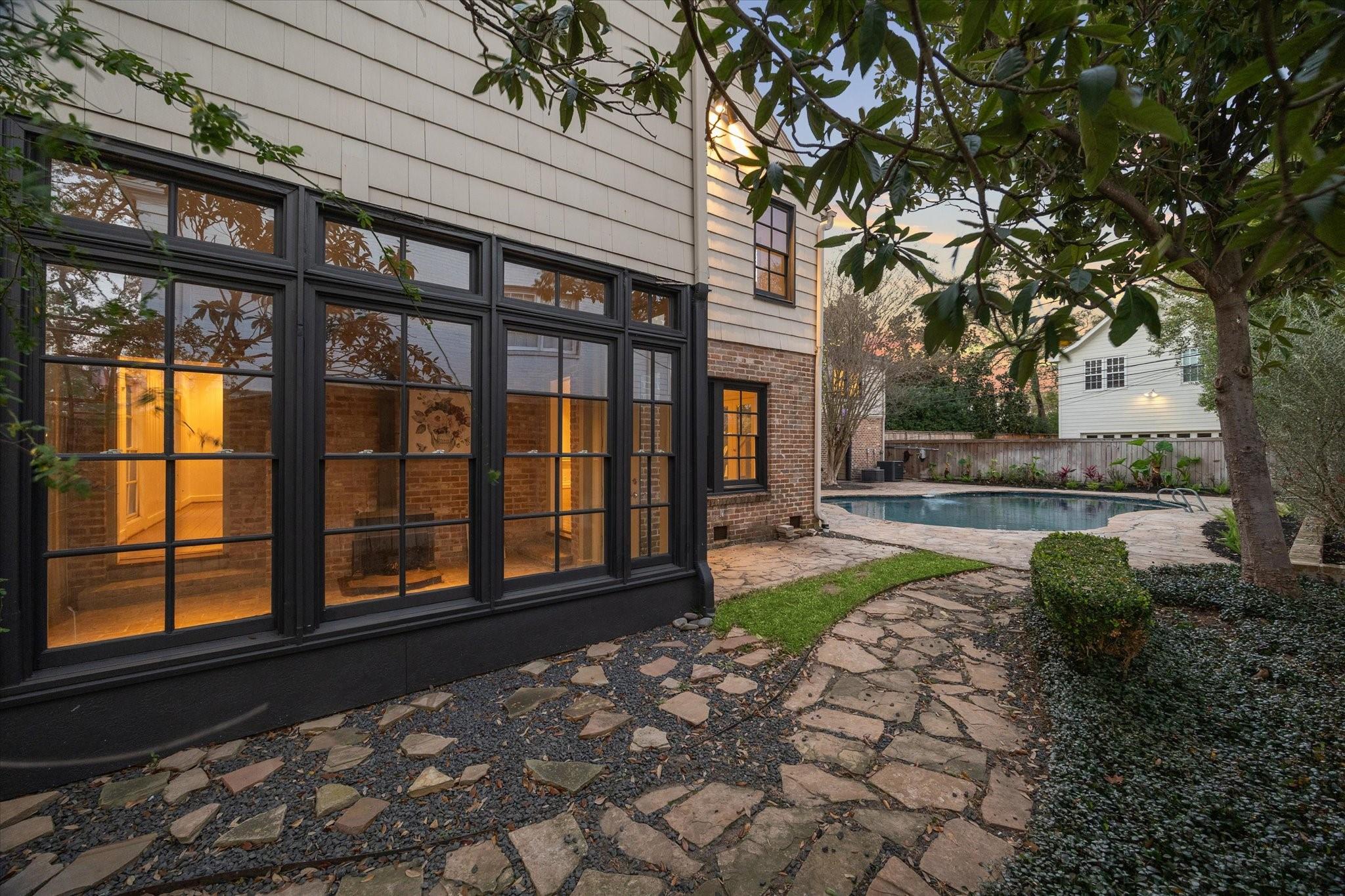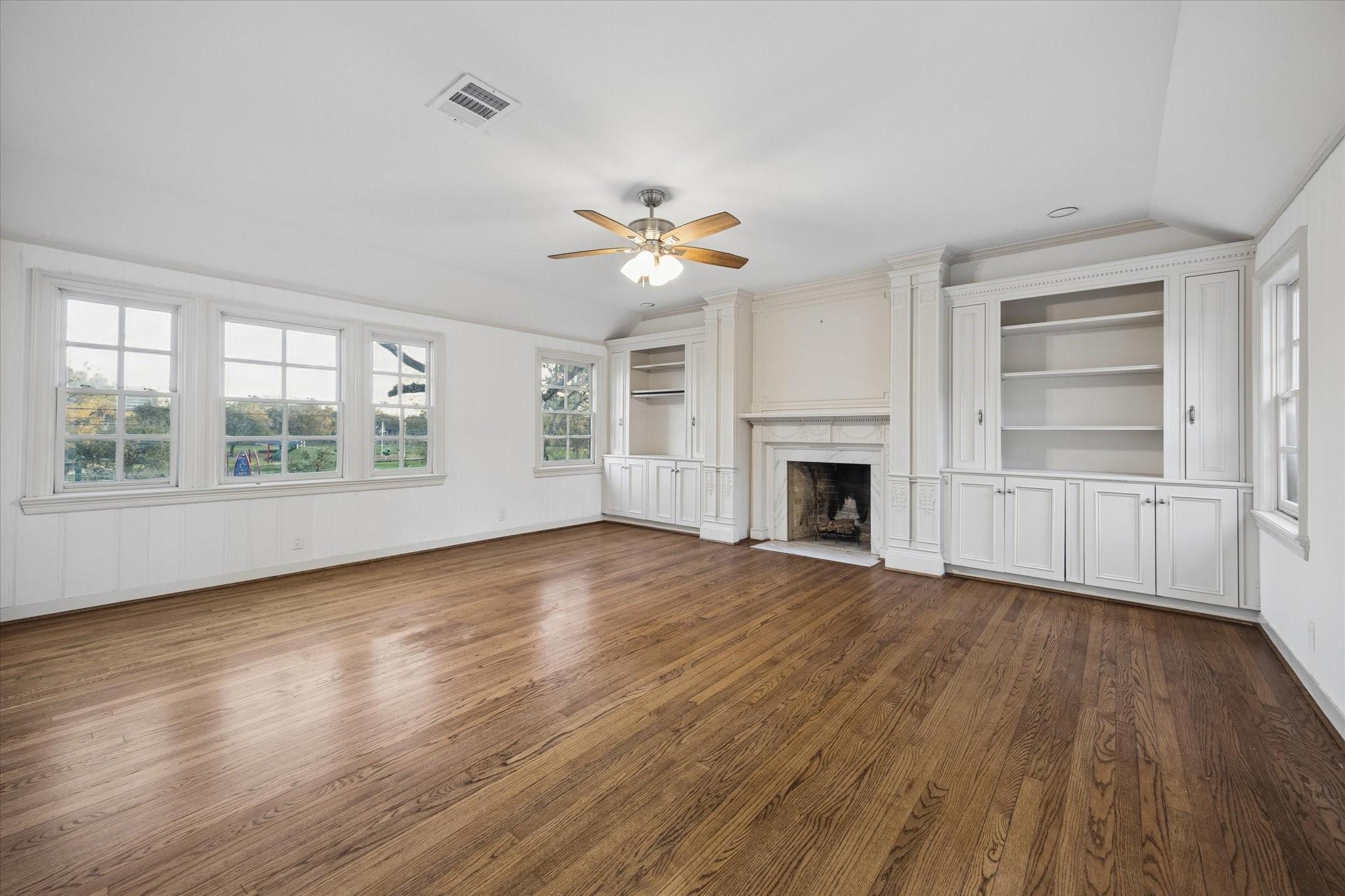 Enjoy refined elegance in this traditional River Oaks home with classic finishes and a spacious floorplan. The circle driveway allows ample guest parking and leads to a gated motor court with 2-car garage, providing privacy and security. The foyer flows into the formal living and dining rooms, with wood paneled walls and antique hardwood floors; as well as a great room ideal for entertaining. The chef's kitchen is equipped with robust food preparation areas, restaurant style sinks, granite countertops, and opens up to the family room and breakfast area. Upstairs, all bedrooms have en-suite closets and bathrooms, and a covered patio runs the length of the home to provide easy outdoor access. The primary suite boasts two walk-in closets, a light-filled bathroom, and a private sitting room that could be converted into additional closet/bathroom space. Skip the River Oaks carpool line with this home, it is across the street! Minutes away from St. John's and River Oaks area shopping!